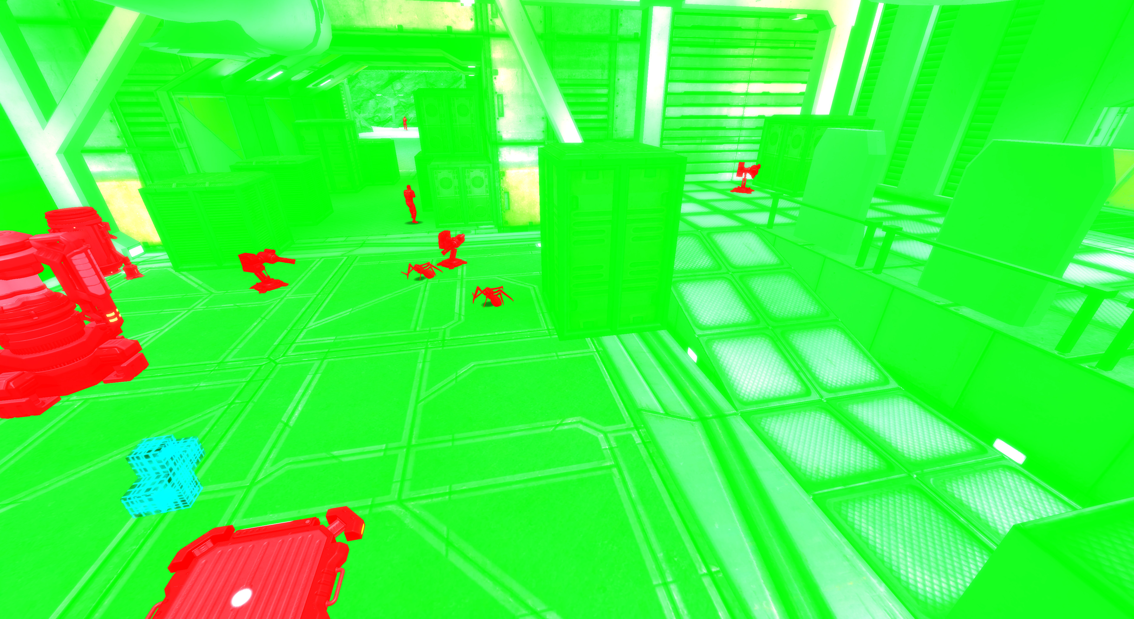 vertexLighting_DBS_entity_fp.glsl, in green what is rendered byvertexLighting_DBS_world_fp.glsland in blue what is rendered bylightMapping_fp.glsl, I get this:While world vertex lighting is disabled: