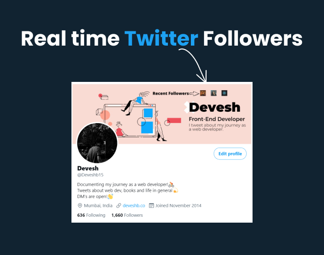 - Fetch your recent 3 followers using Twitter API. (Rate limit: 180 requests per 15 mins)