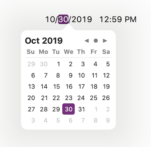 JBDatePickerViewController displays labels showing its represented date and allows the user to use the keyboard to enter a date. When the user clicks on the date portion, the view controller presents its own JBCalendarViewController. You can allow the user to select a date, time, or both, by setting the datePickerMode property.