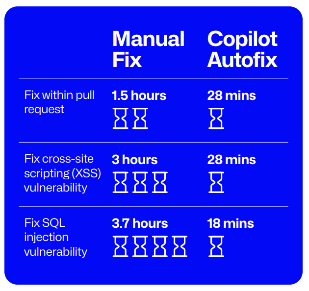 Our vision for security is simple: “Found means fixed.” With AI, developers can remediate vulnerabilities the moment they’re discovered—almost instantly and with just a few clicks. Copilot Autofix goes beyond just surfacing issues, as it provides automatically generated vulnerability analysis, detailed alert explanations, and, most importantly, AI-powered fixes. This ensures that security flaws don’t just get detected—they get resolved, helping developers stay focused on building great software.