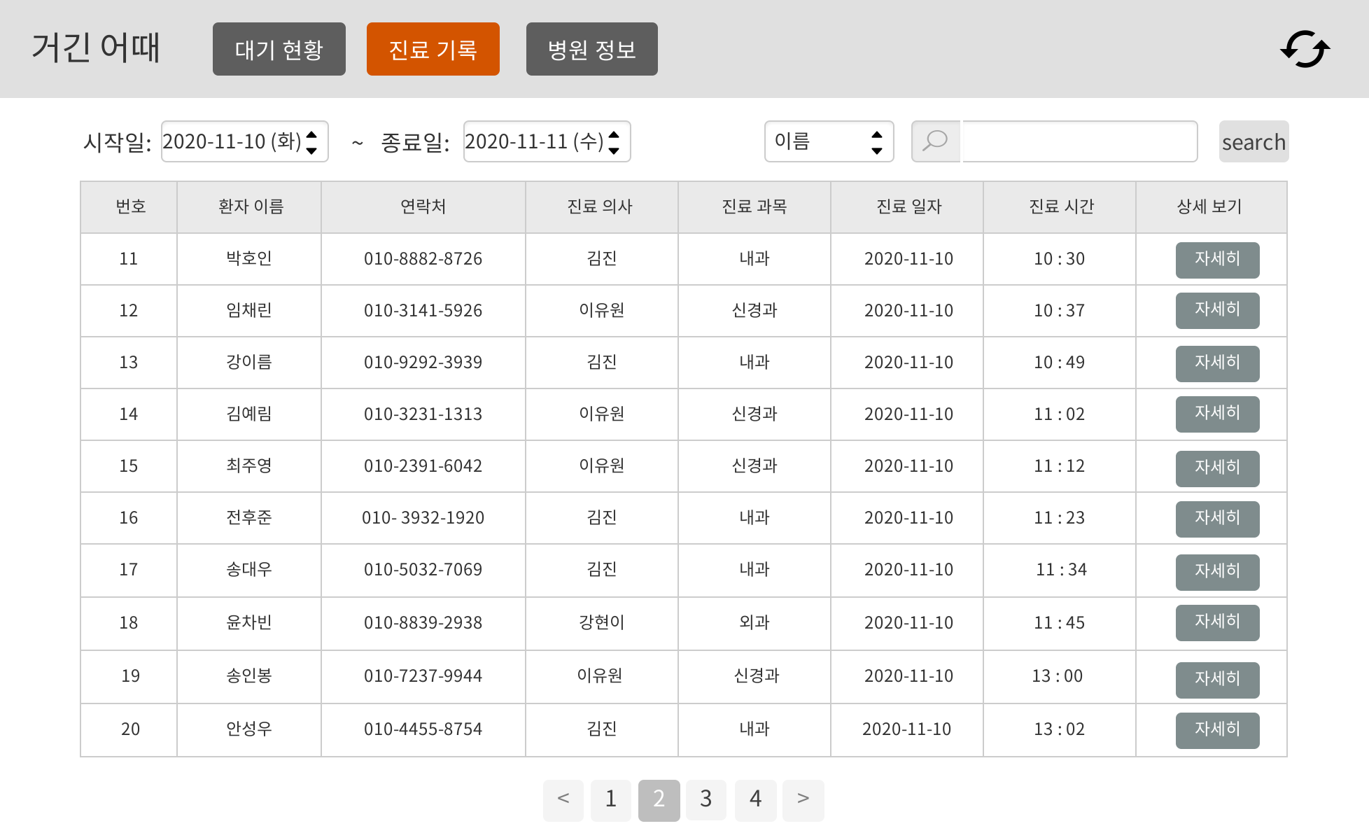- 환자의 이름과 연락처를 볼 수 있다.