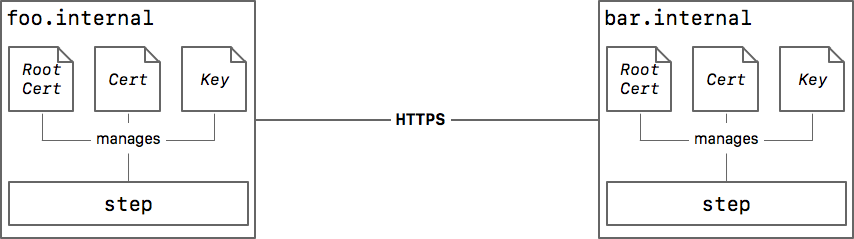 Let's consider a simple concrete example: using step certificates to issue certificates to two microservices so they can communicate securely using HTTPS.